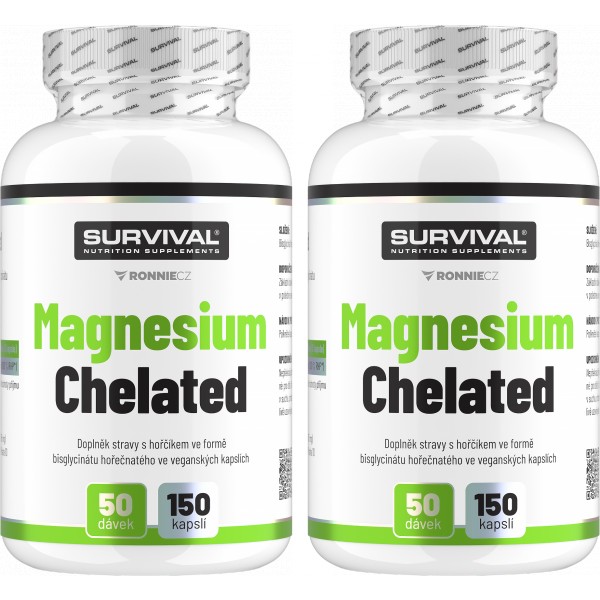 Magnesium Chelated nabízí vysoce vstřebatelnou chelátovou formu hořčíku bisglycinát hořečnatý ve veganských kapslích. Hořčík je esenciálním prvkem zajišťujícím bezproblémovou nervosvalovou kontrakci pro jakýkoliv fyzický výkon. Zvýšenou potřebu magnézia pociťují hlavně vytrvalostní sportovci, jejichž dlouhotrvající výkon je na dostatečné zásobě hořčíku v organismu zcela závislý. Magnesium Chelated je ale oblíbeným suplementem i pro nesportovní veřejnost, a to mimo jiné pro svoji vysokou účinnost a nejvyšší možnou vstřebatelnost.